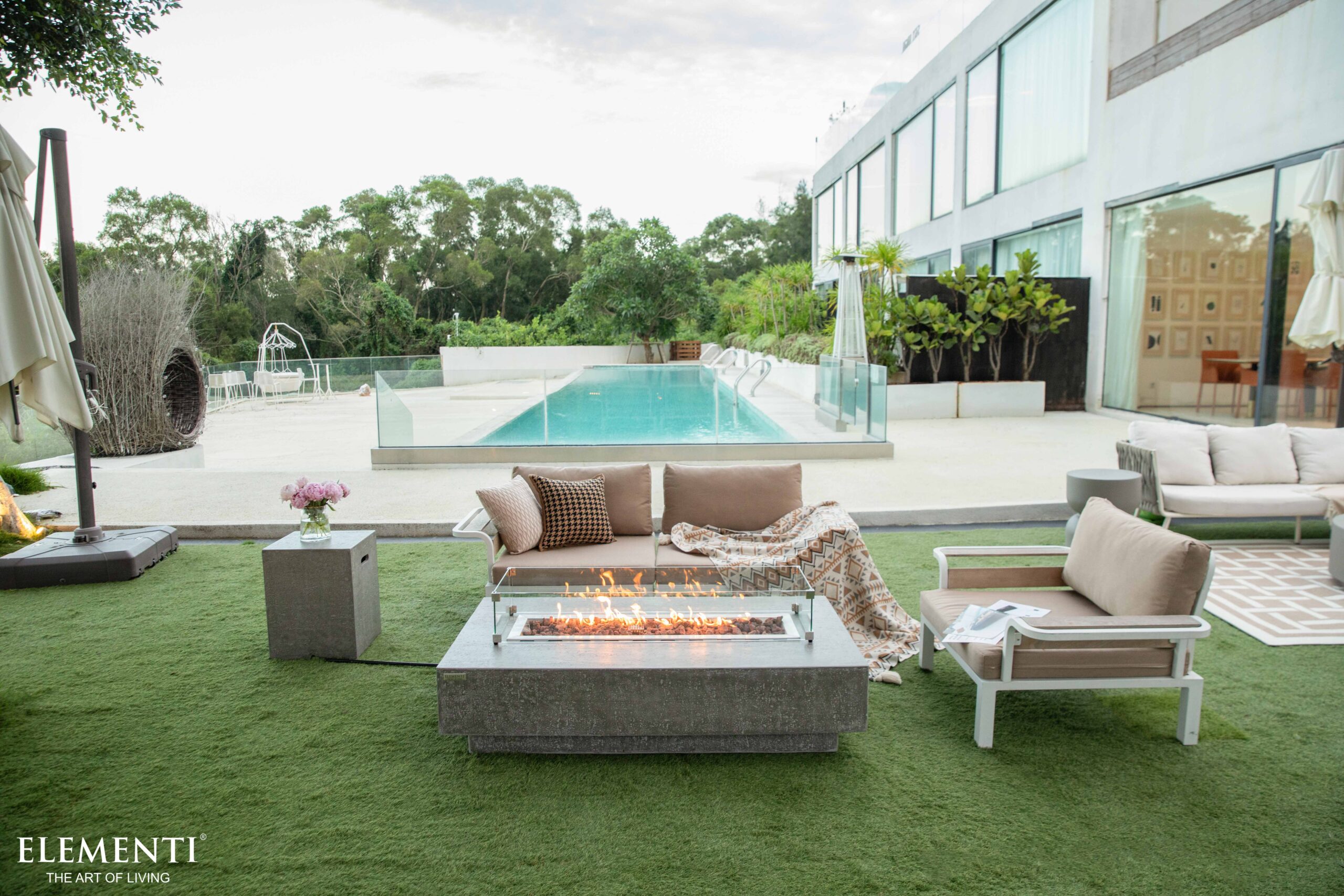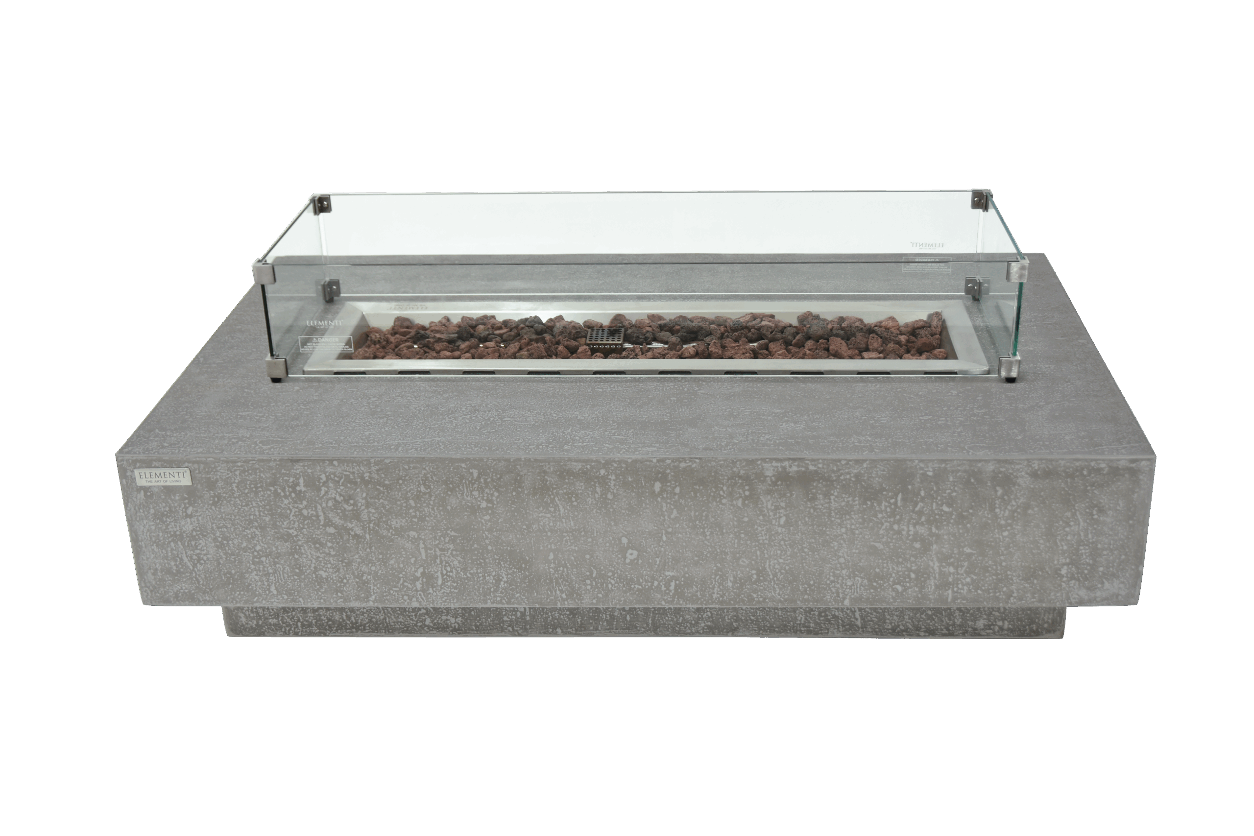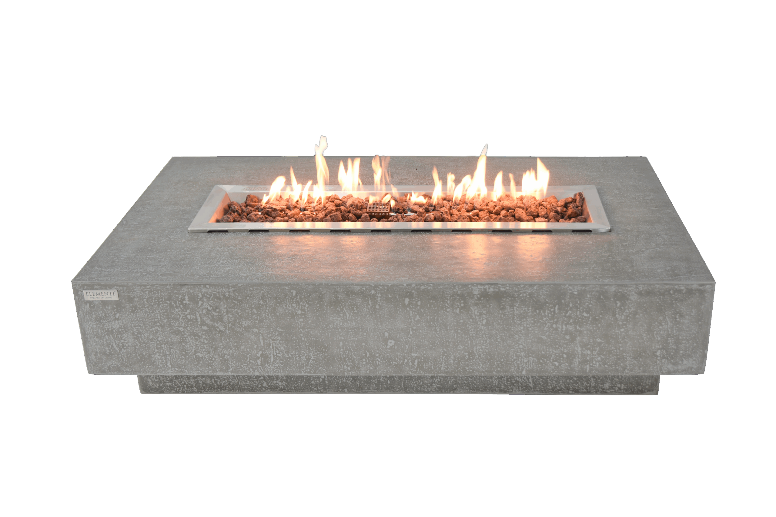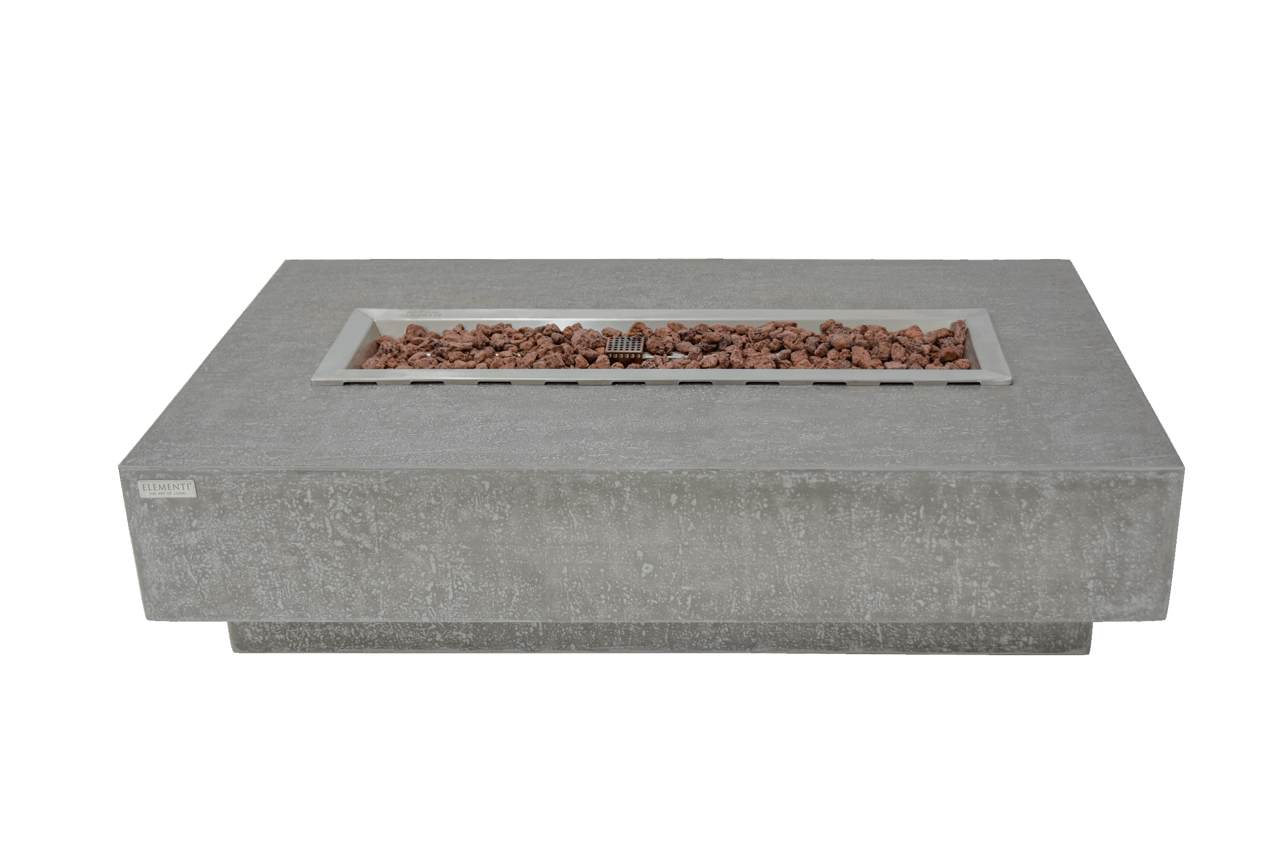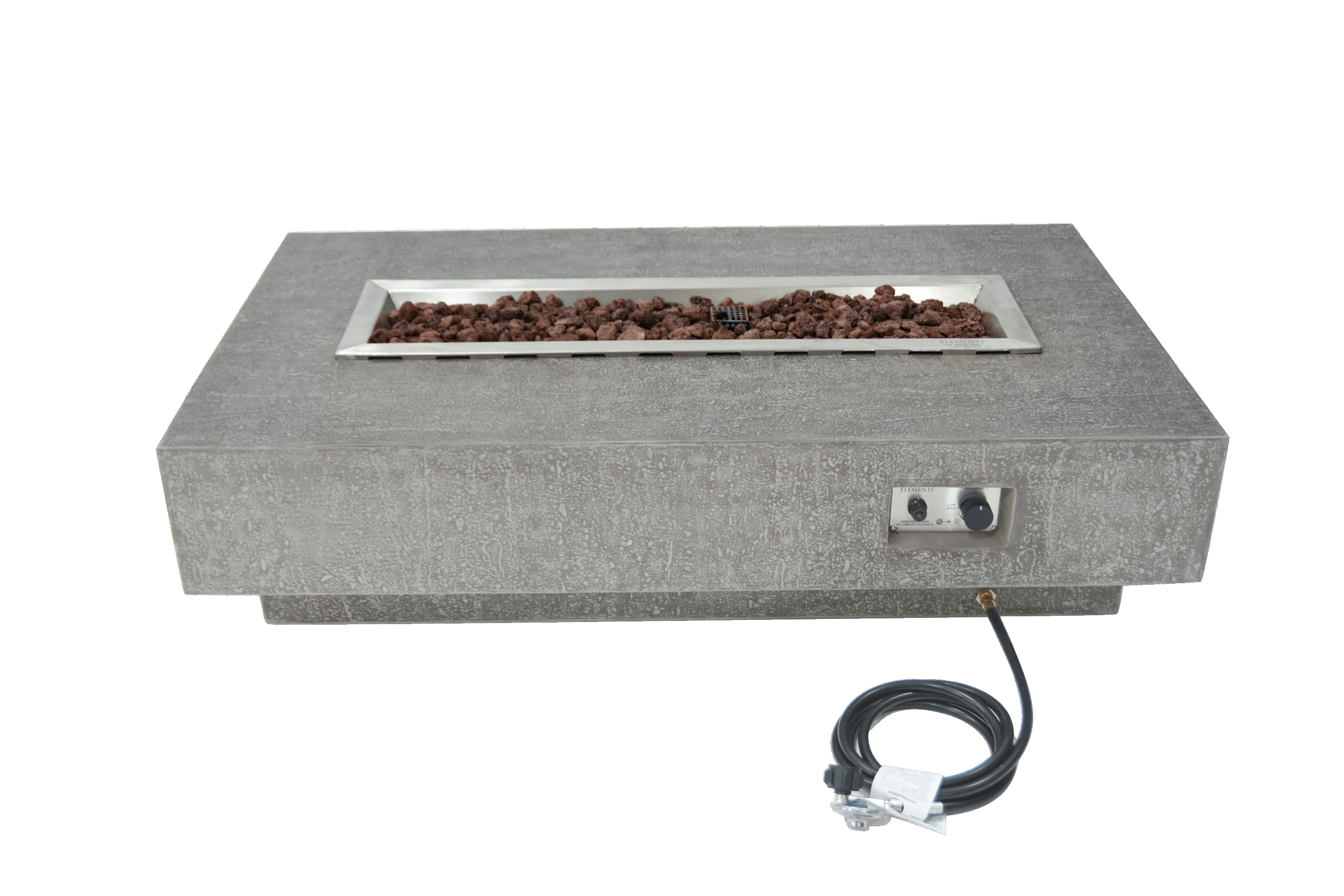 Highlight your outdoor space with the ELEMENTI HAMPTON Cast Concrete Propane Fire Table. Outdoor living is the new lifestyle choice and one of our exclusive range of gas-powered ‘fire pits’ will allow you to make more use, in greater comfort, of your outdoor space. A new concept in patio heaters, designed in the USA to enhance the outdoor spaces in your home or garden with a uniquely designed piece of garden furniture that serves a practical purpose. Our outdoor gas fire pit table are designed to complement a wide range of styles from contemporary to rustic and they will add to the appearance of any landscape, plus they provide warmth and the special visual attraction of ‘living’ flames. Although substantial, these patio heaters (rectangular fire pit table) are portable and can be moved to alternative locations/positions with relative ease. Combining warmth and ambiance, our deck fire pit table will bring friends and family together to spend hours of quality time. Sit back and relax with the propane fire table centered in the middle of your backyard, patio, deck, or poolside.