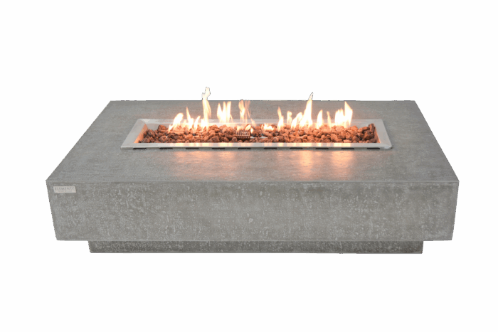 Highlight your outdoor space with the ELEMENTI HAMPTON Cast Concrete Propane Fire Table. Outdoor living is the new lifestyle choice and one of our exclusive range of gas-powered ‘fire pits’ will allow you to make more use, in greater comfort, of your outdoor space. A new concept in patio heaters, designed in the USA to enhance the outdoor spaces in your home or garden with a uniquely designed piece of garden furniture that serves a practical purpose. Our outdoor gas fire pit table are designed to complement a wide range of styles from contemporary to rustic and they will add to the appearance of any landscape, plus they provide warmth and the special visual attraction of ‘living’ flames. Although substantial, these patio heaters (rectangular fire pit table) are portable and can be moved to alternative locations/positions with relative ease. Combining warmth and ambiance, our deck fire pit table will bring friends and family together to spend hours of quality time. Sit back and relax with the propane fire table centered in the middle of your backyard, patio, deck, or poolside.
